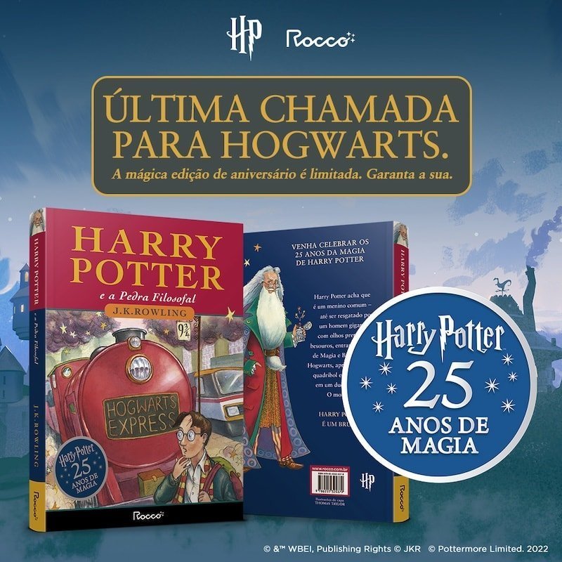 Para celebrar os 25 anos do lançamento de Harry Potter no Brasil, a editora Rocco lançou uma edição comemorativa e inédita do primeiro livro, uma réplica da versão original do Reino Unido. A franquia marcou o mercado editorial e continua sendo o carro-chefe da editora, com um catálogo extenso e diversos produtos.